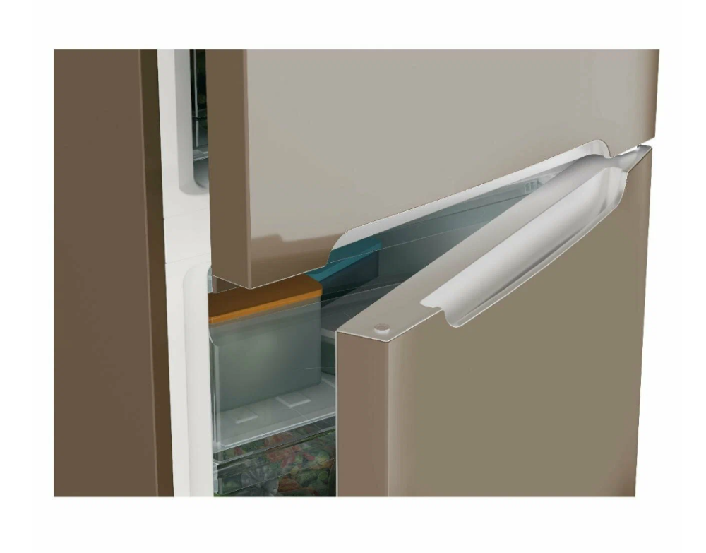 Холодильник Candy No Frost Plus+ CCRN 6200G двухкамерный, полезный объем 370 л, электронное управление, перенавешиваемые двери, автономное сохранение холода до 10 ч, режим суперохлаждения, LED-освещение, звуковое оповещение об открытой двери, золотой