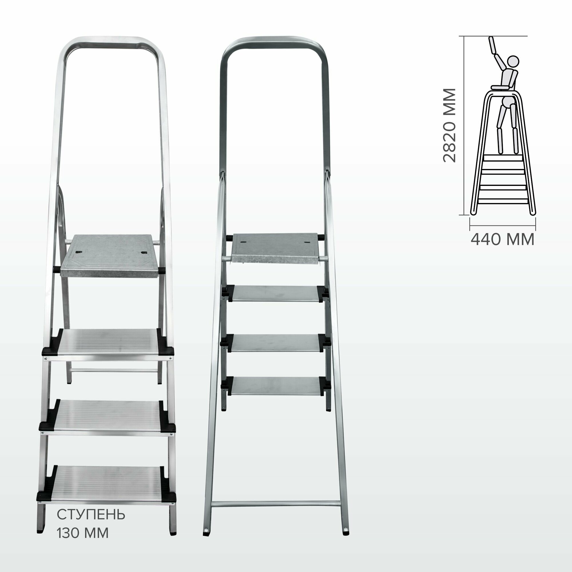 Стремянка Новая высота 4 ступеней с шириной 130 мм