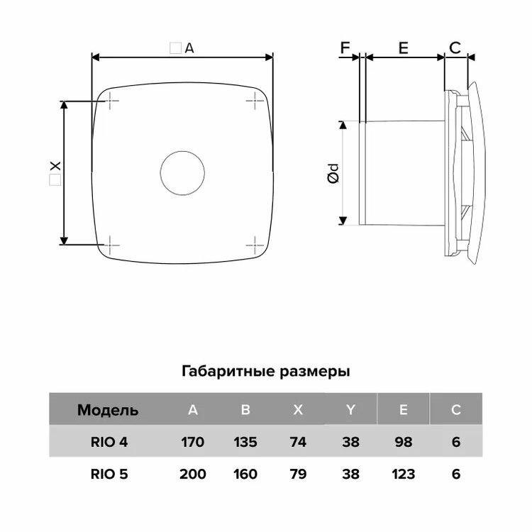 RIO 5C, Вентилятор осевой вытяжной с обратным клапаном D 123
