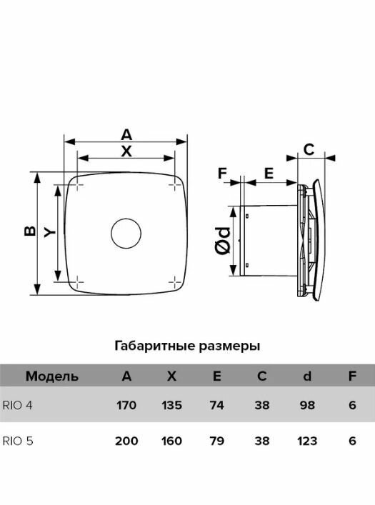 Вытяжной вентилятор 125 с обратным клапаном RIO 5C Obsidian