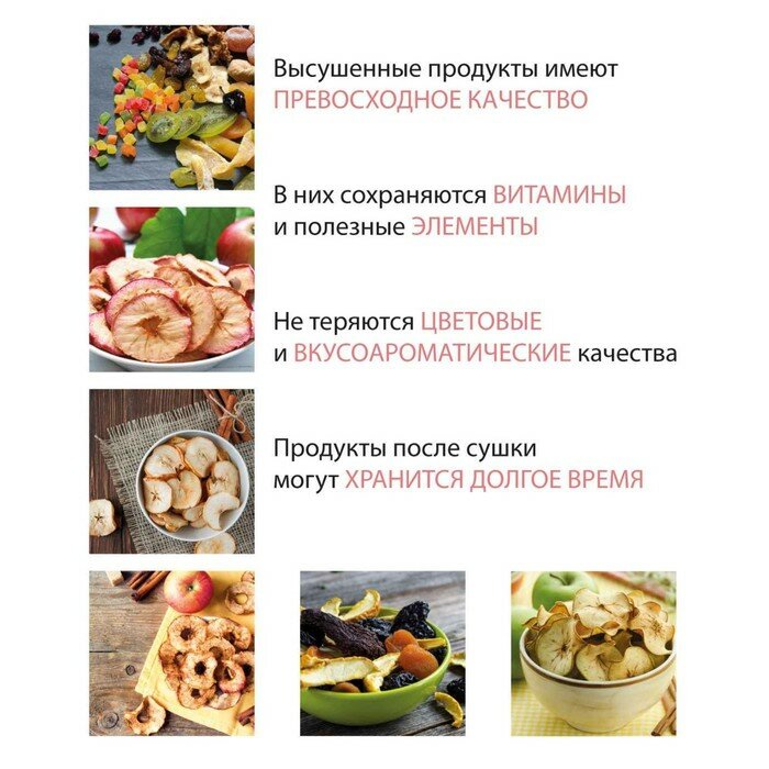 | Отзыв: | за 4 часа может высушить 15 средних яблок |