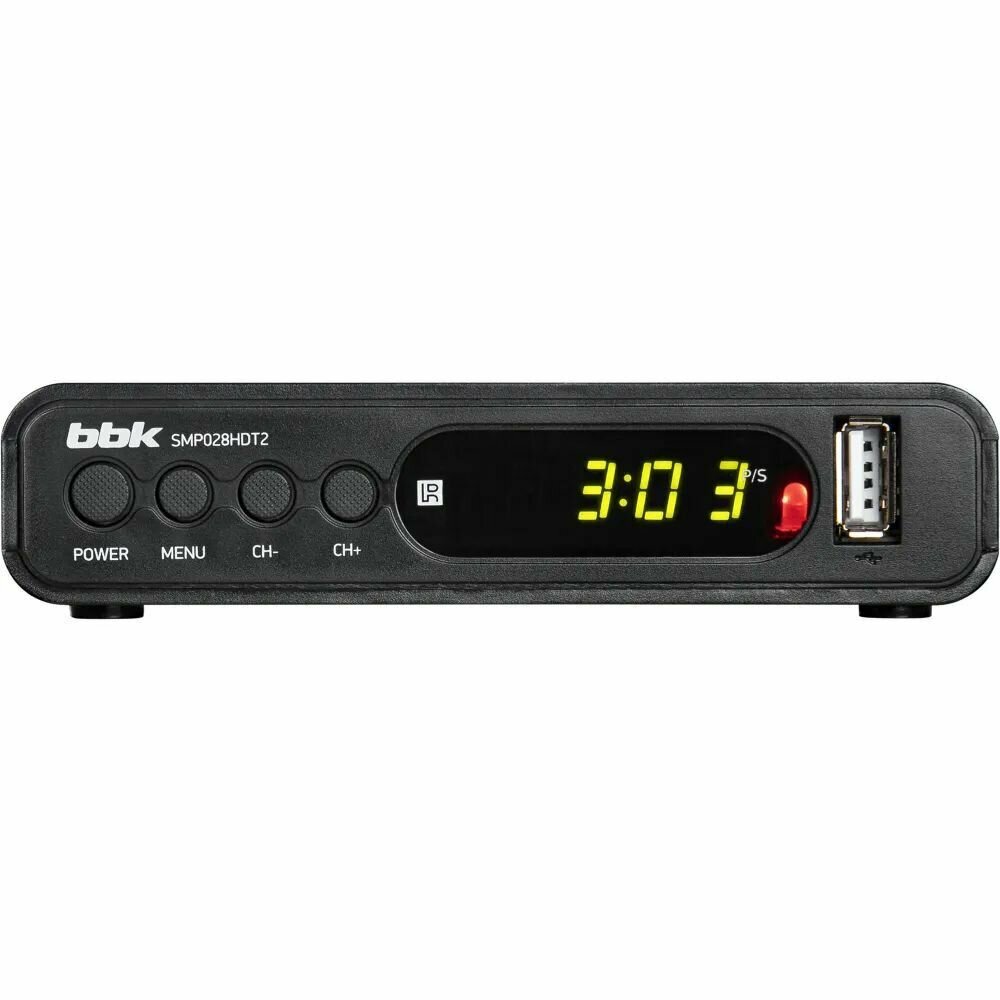 Цифровой телевизионный DVB-T2 ресивер BBK SMP028HDT2 черный, HDMI выход, DVB-T/T2, USB флеш, пульт ДУ, дисплей