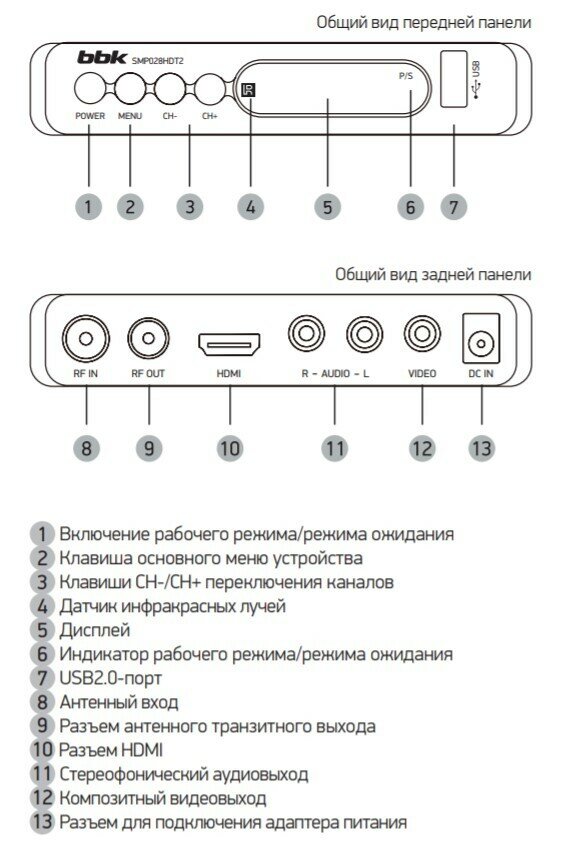 ТВ-тюнер BBK SMP028HDT2 Black DVB-T, DVB-T2, поддержка режима 1080p, воспроизведение файлов, выход HDMI, пульт ДУ