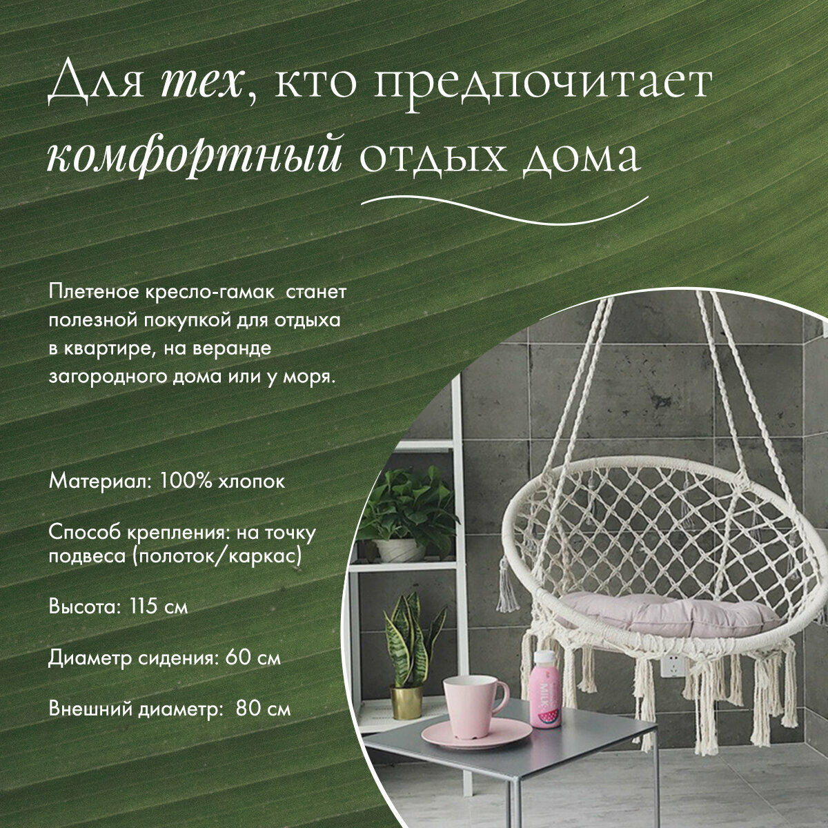| Отзыв: | Отличный гамак, очень стильно вписался в наш интерьер гостиной.не громоздкий |