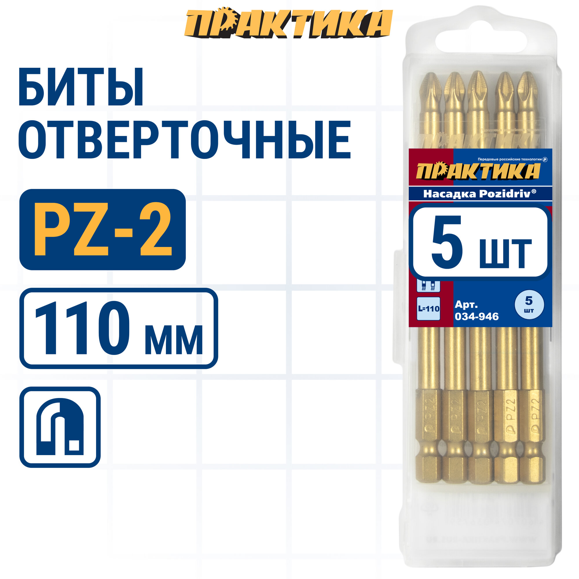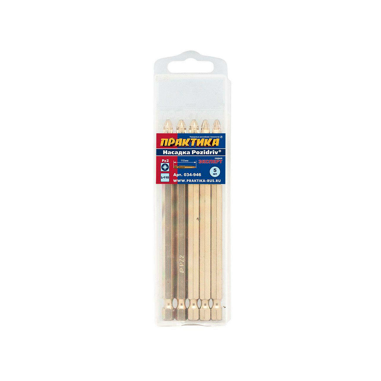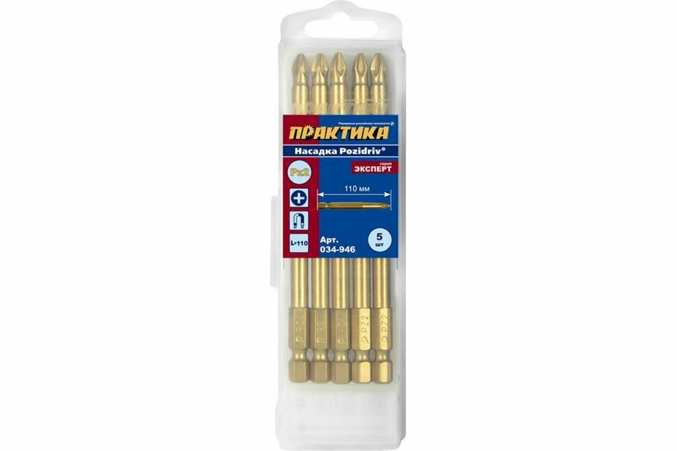 Бита "Эксперт" PZ-2 х 110мм Tin (5шт), кассета ПРАКТИКА 034-946