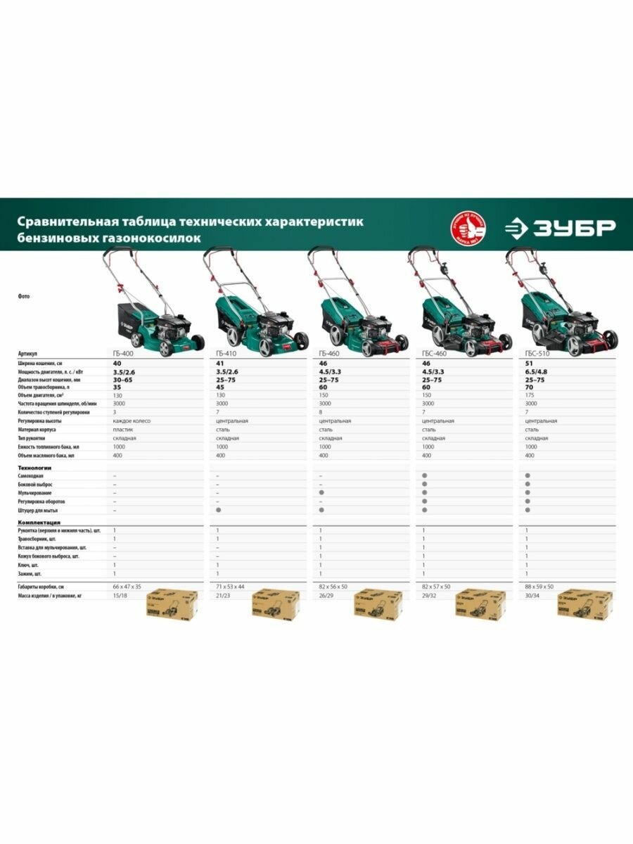 ЗУБР 400 мм, 3.5 л.с., бензиновая газонокосилка (ГБ-400)