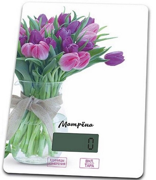 Кухонные весы Матрёна МА-037 тюльпаны белый/фиолетовый