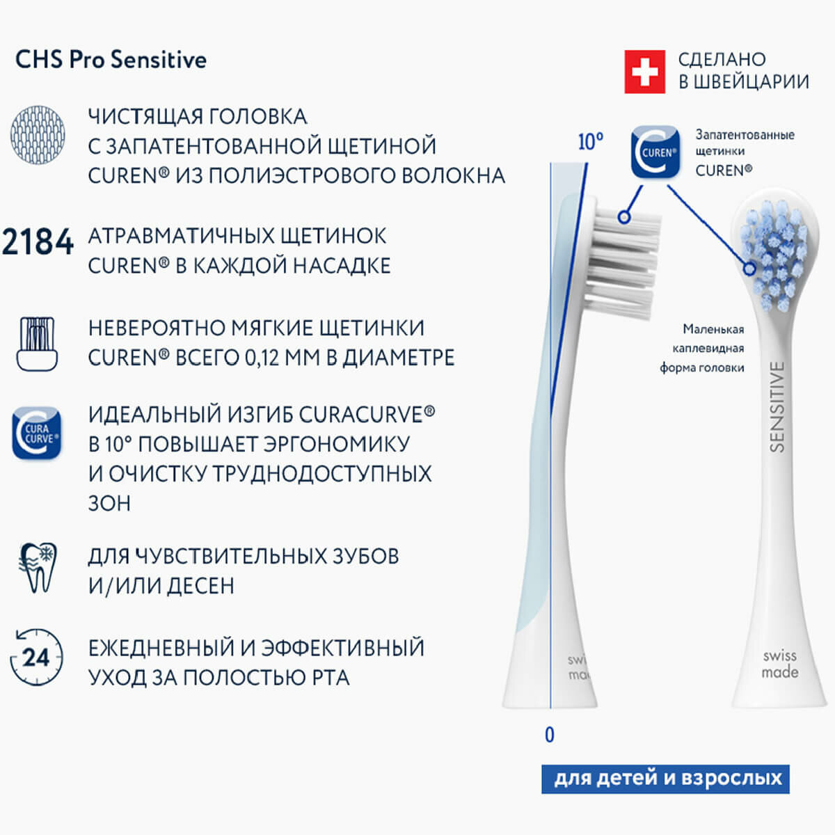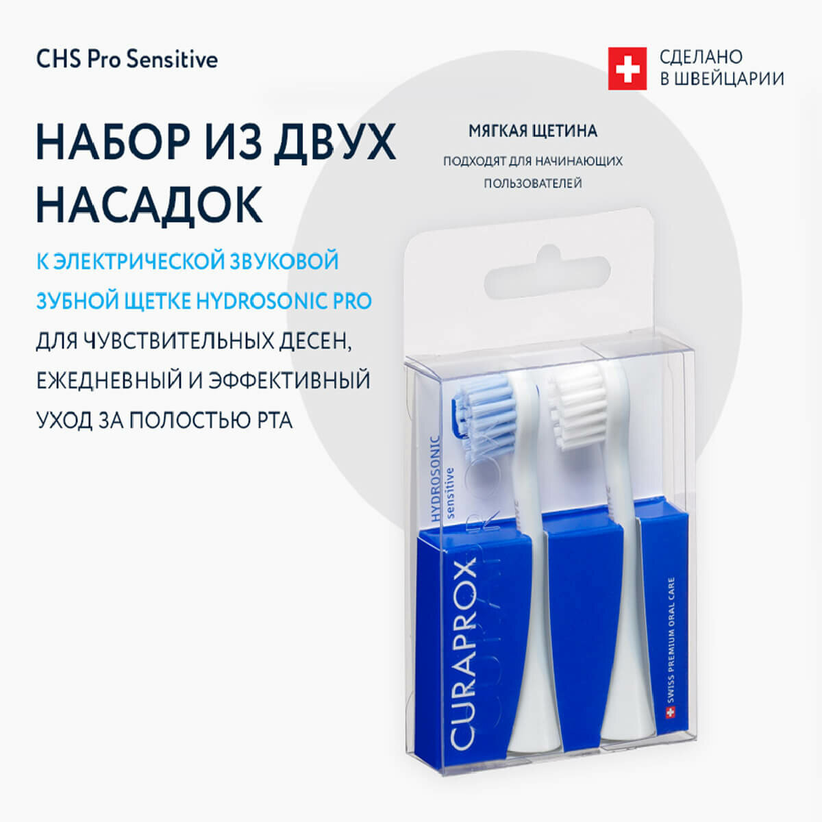 Набор насадок CHS Pro Sensitive для звуковой зубной щетки Hydrosonic Pro, Curaprox