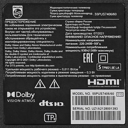 Телевизор Philips 55PUS7406/60 LED, HDR (2021) 55"