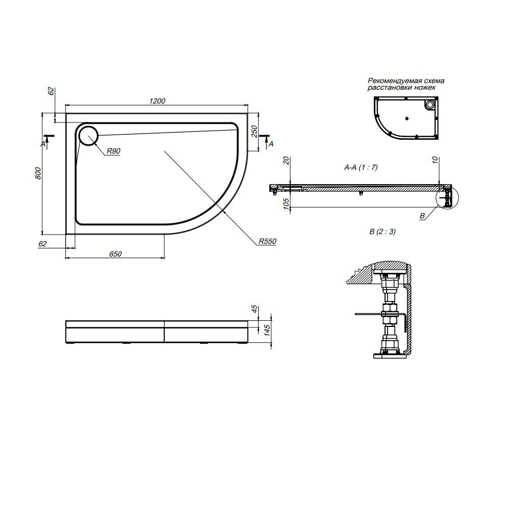 Душевой поддон AM.PM Like 120 W83T-302R120W, правосторонний, 120x80