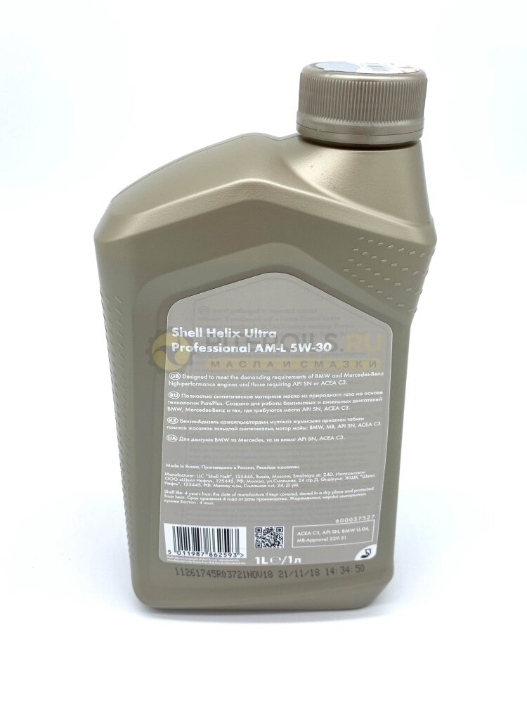 Синтетическое моторное масло SHELL Helix Ultra Professional AM-L 5W-30, 1 л, 1 кг
