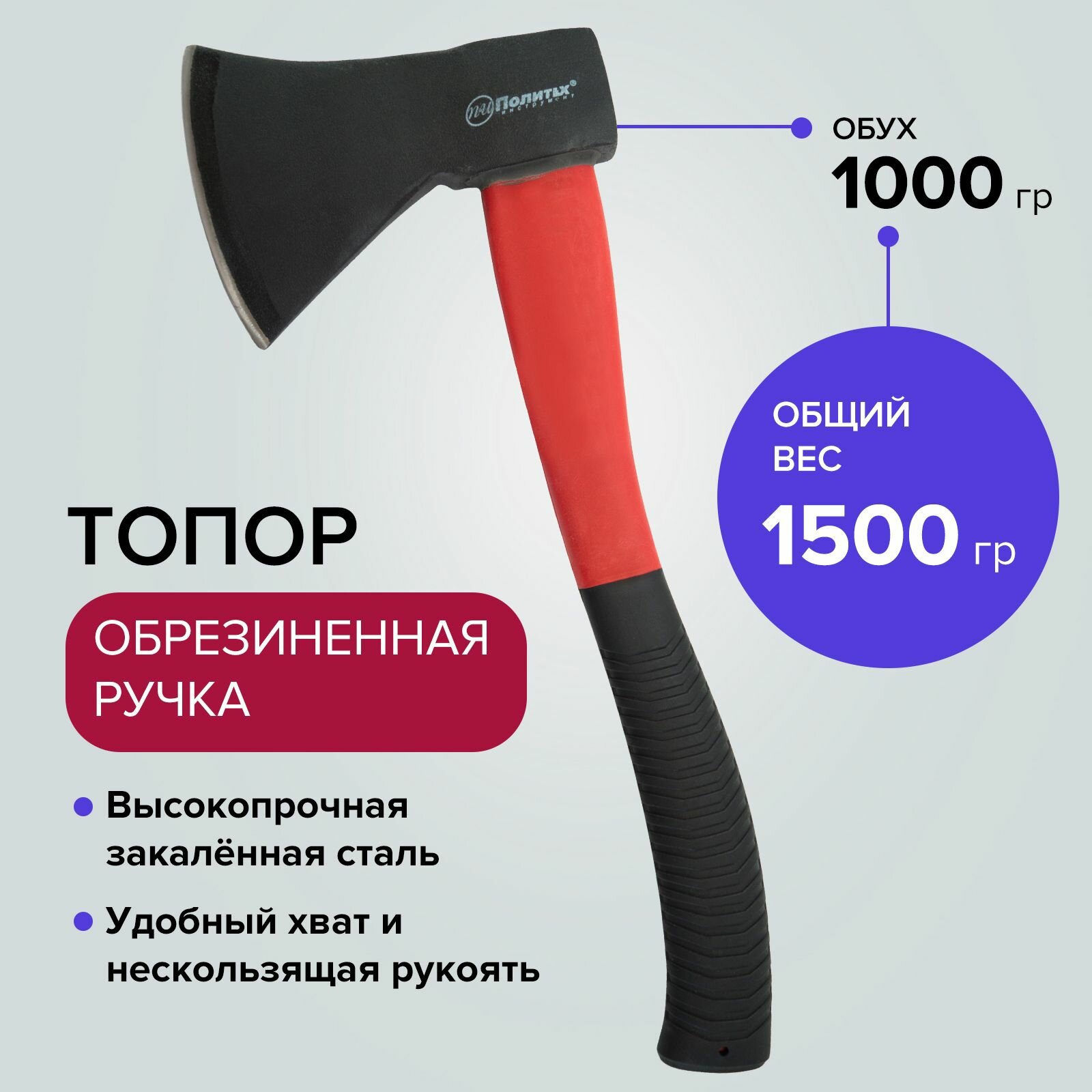 Топор универсальный 1000 гр стеклопластик с обрезиненной ручкой Политех Инструмент