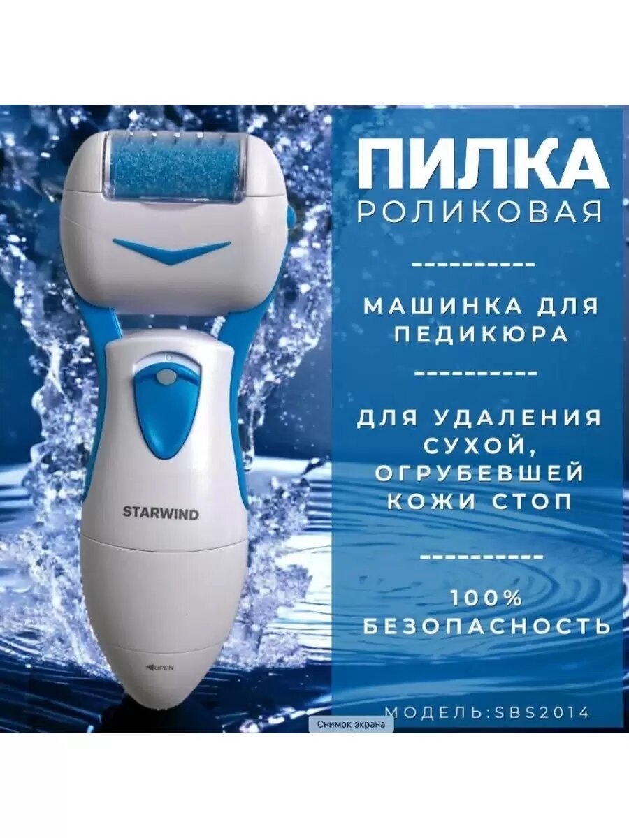 Пилка роликовая электрическая Starwind SBS 2014, для ухода за ногами/стопами, Синий/белый