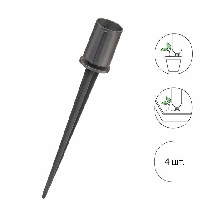 Купить Автополив для комнатных растений под бутылку, регулируемый, серый, из пластика, высота 20 см, 4 шт. (комплект из 16 шт)