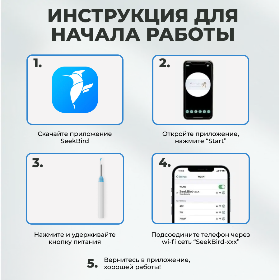 | Отзыв: | Инструкция правильная внутри коробки. Искать нужно wifi сеть seekbird, и программу скачивать тоже seekbird. Подключать легко. Русская инструкция некорректна. |