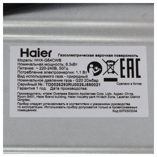 Газовая панель HAIER HHX-G64CWB