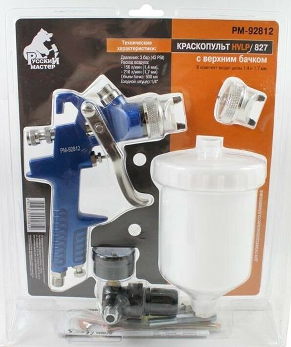 Купить Русский Мастер Краскопульт 827 д=1,4/1,7 верхний бачок в блистере РМ-92812