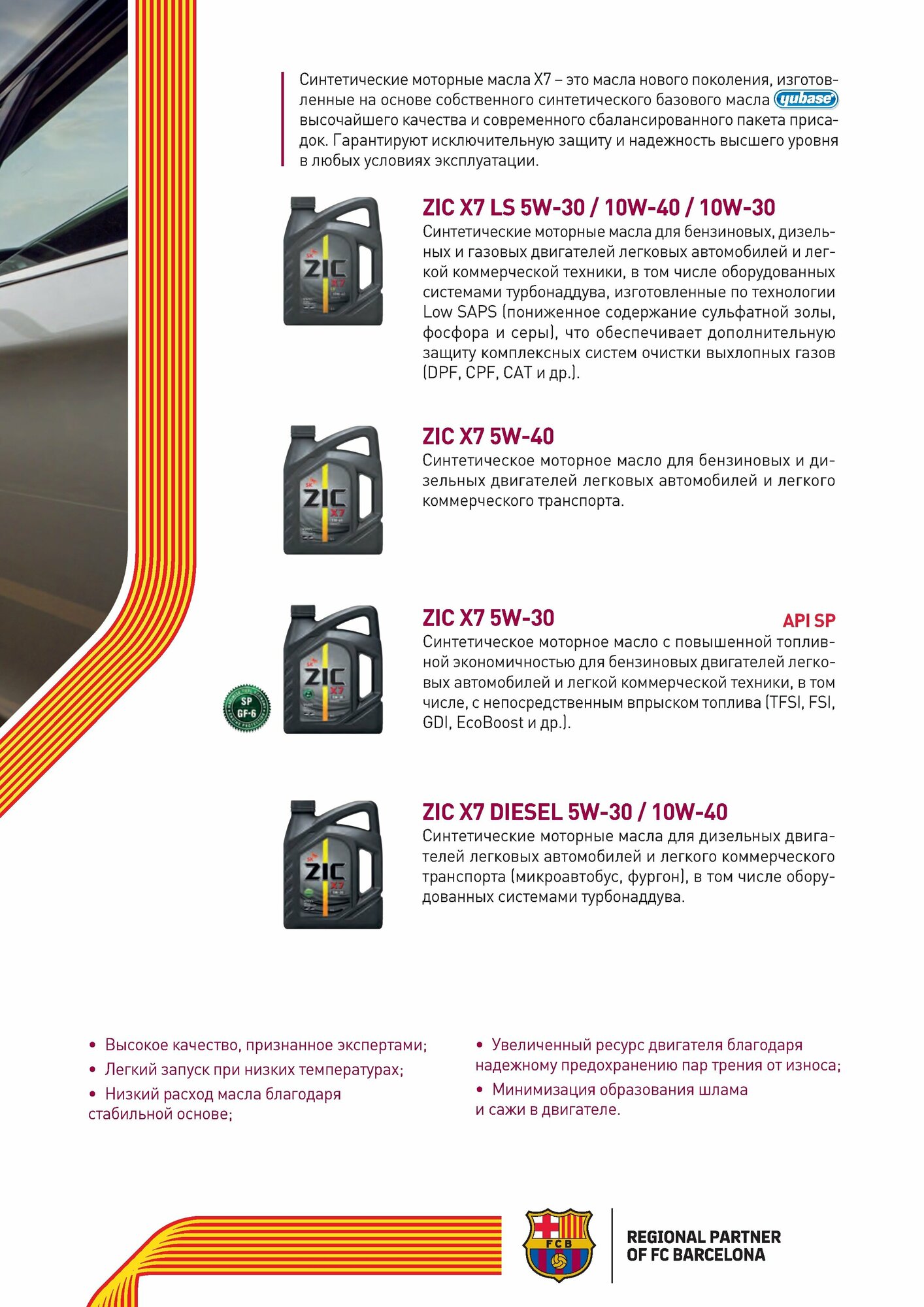 масло zic x7(5000) diesel 10w40 6л синтетическое моторное