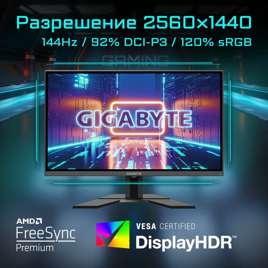 27" Монитор GIGABYTE G27Q (20VM0-GG27QBI-1EKR) черный - 2560x1440@144 Гц, IPS, 1 мс, 1000 : 1, 350 Кд/м², 178°/178°, 3,5 мм HDMI, DisplayPort, NVIDIA G-SYNC Compatible, AMD FreeSync Premium, USBх2 шт