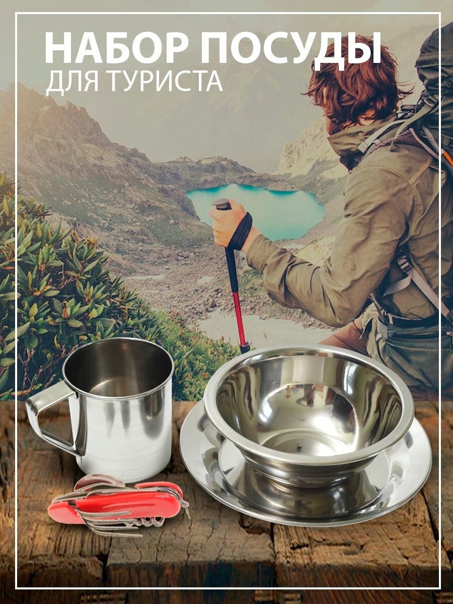 Набор туристической посуды, посуда туристическая для похода, кемпинга, подарок для туриста, 5 предметов, нерж.сталь