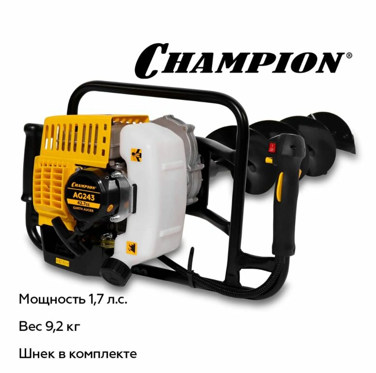 Мотобур CHAMPION AG 243+ шнек для почвы 150 интересное: