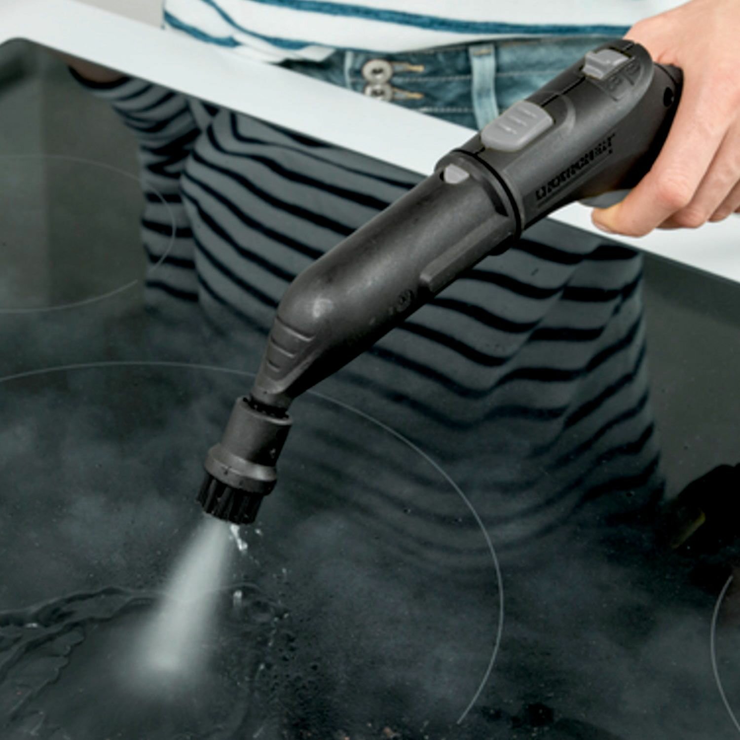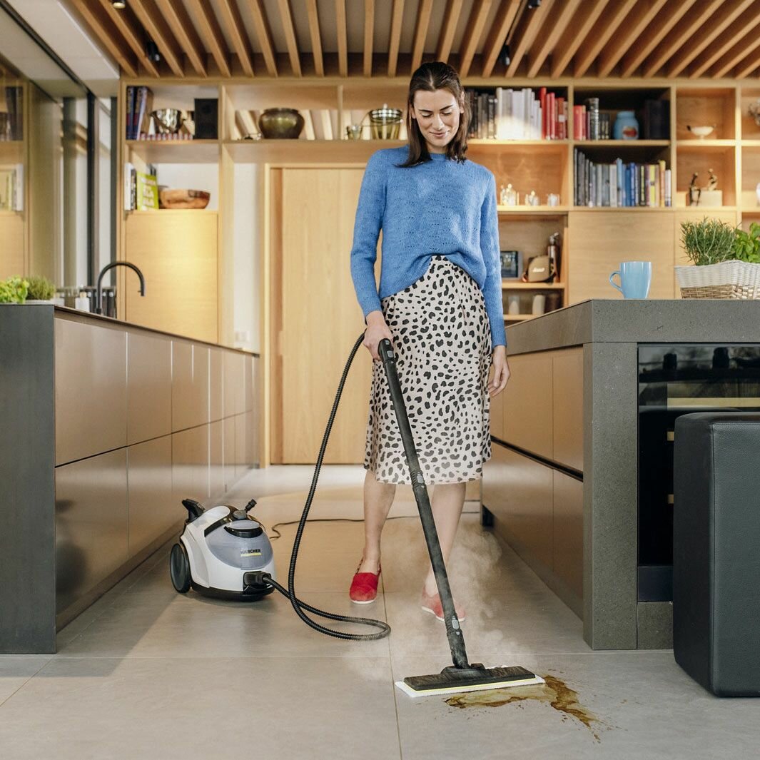 Купить Пароочиститель для дома Karcher SC 5 EasyFix, белый + аксессуары VELERCART: 2 салфетки для пола, 2 обтяжки для ручной насадки, 4 щёточки, насадка для мойки окон