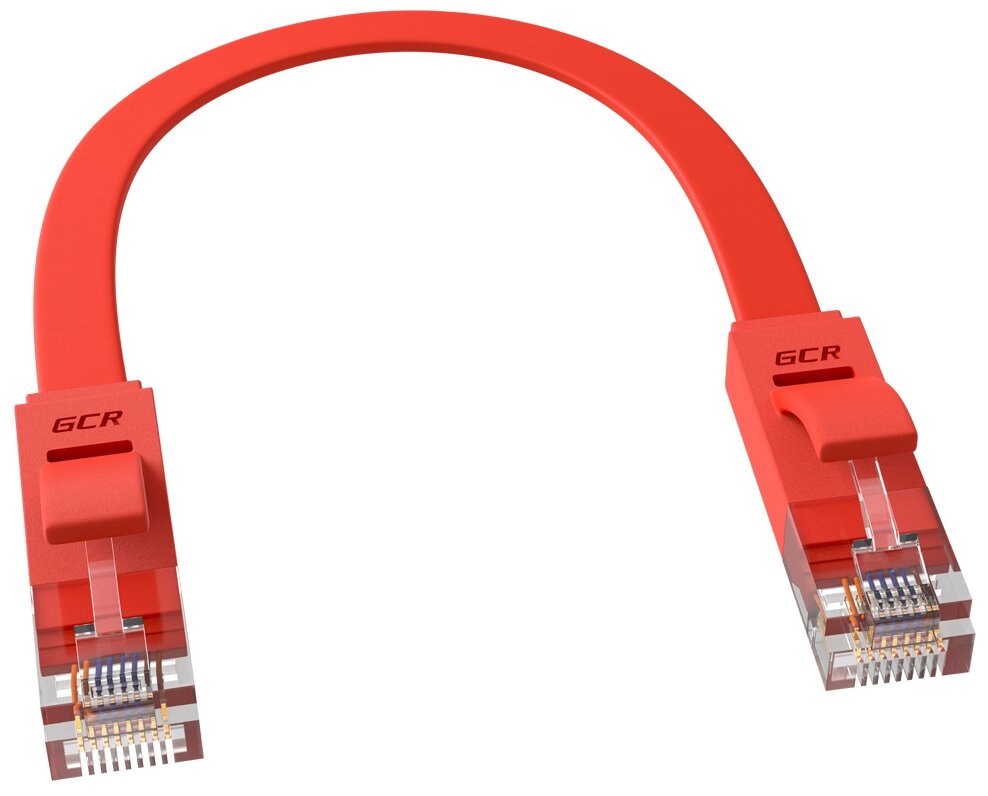 Патч-корд 20м GCR PROF плоский UTP cat.6 10 Гбит/с RJ45 LAN кабель для интернета контакты 24K GOLD (GCR-LNC62) красный