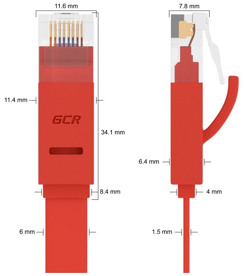 Патч-корд GCR PROF плоский UTP cat.6 10 Гбит/с RJ45 LAN кабель для интернета контакты 24K GOLD (GCR-LNC62) красный 1.0м