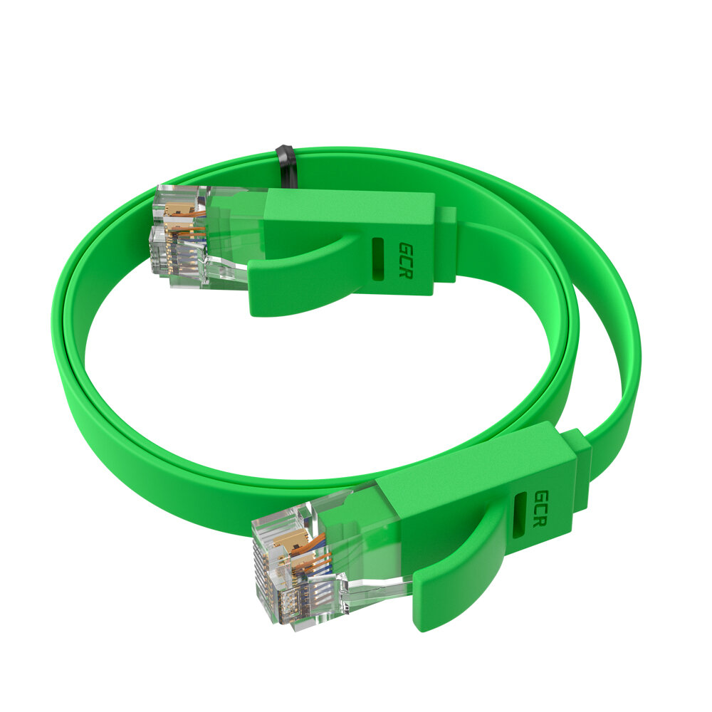 Патч-корд GCR PROF плоский UTP cat.6 10 Гбит/с RJ45 LAN контакты 24K GOLD (GCR-LNC62) зеленый 1.0м