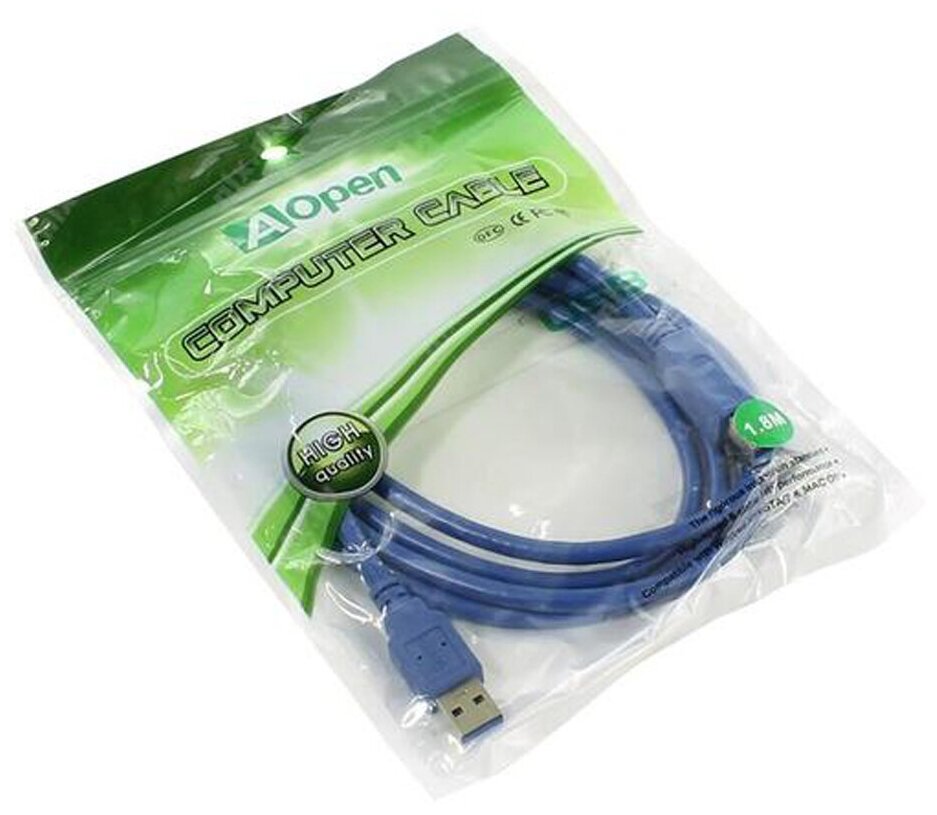 Кабель USB 3.0 A (M) - B (M), 1.8м, AOpen (ACU301-1.8M)