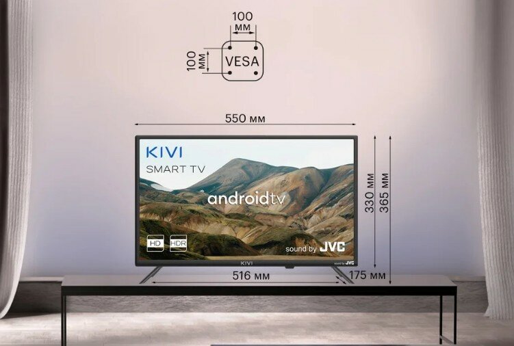 Телевизор KIVI 24H740LB, 24'' (61 см), 1366x768, HD, 16:9, черный