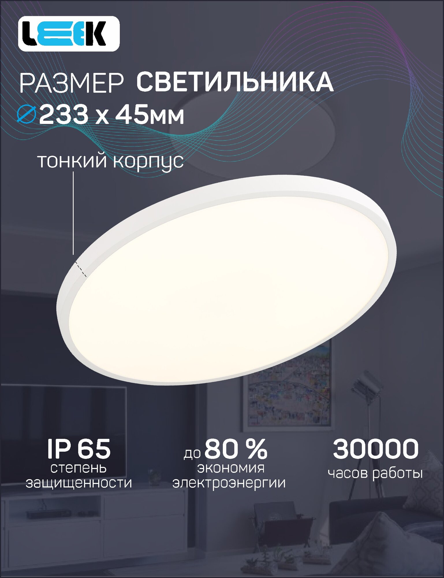СохранитьLEEK светильник светодиодн. декоративный влагозащ 18W(1440lm) 5000K 5K круг 233x45 ЖКХ BL IP65 (арт. 804179) интересное: