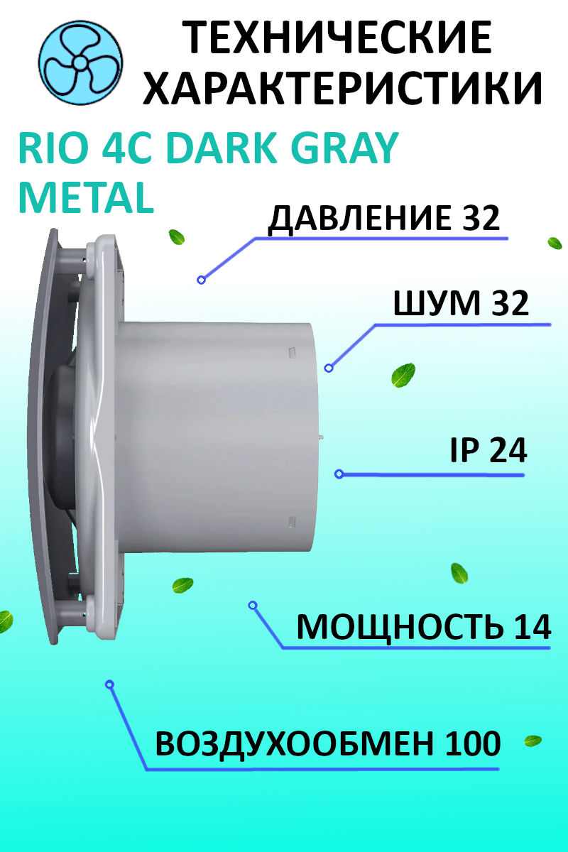 Вентилятор осевой вытяжной Diciti Rio 4C Gray Metal D100 мм 32 дБ 100 м3/ч цвет серый