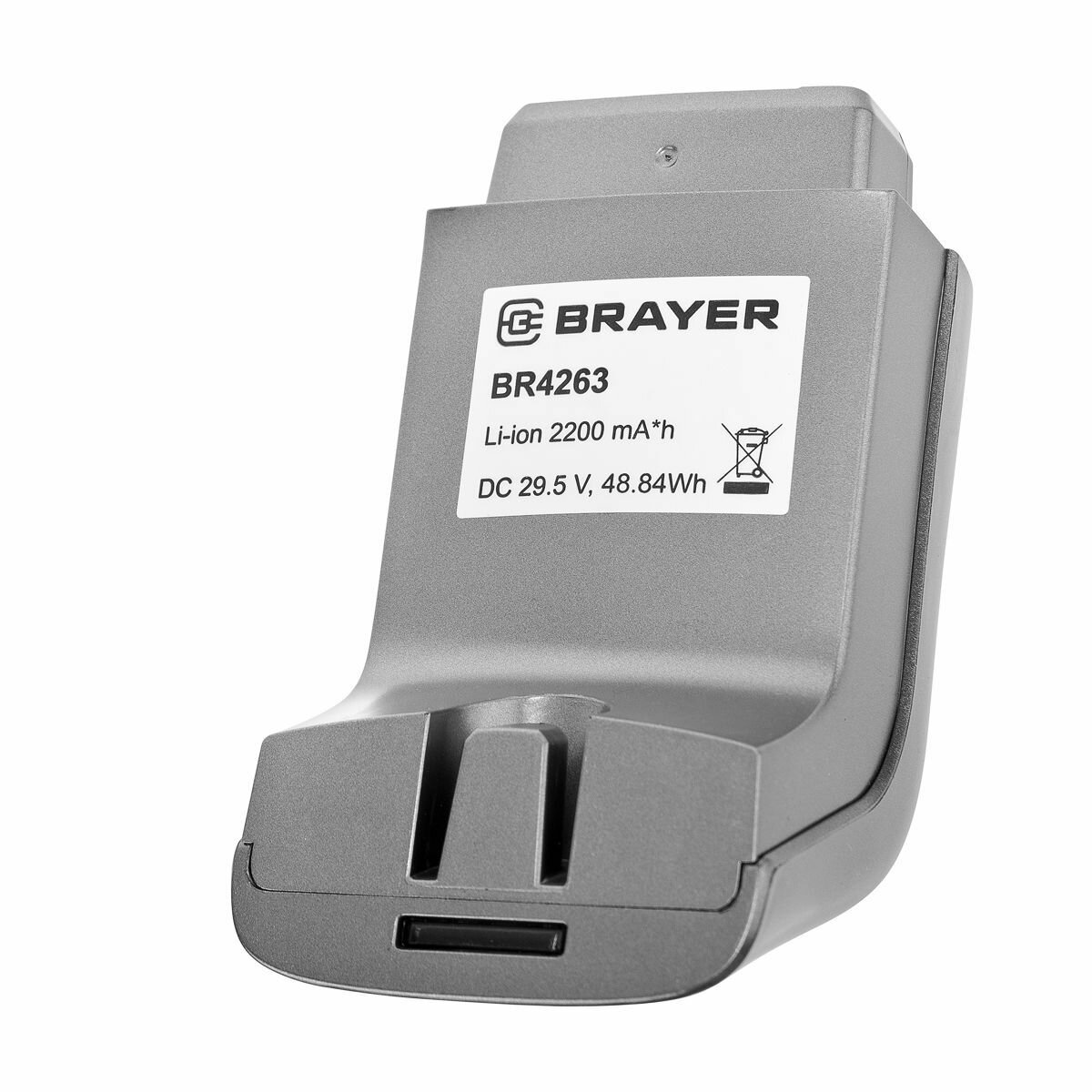Купить Вертикальный пылесос BRAYER BR4263, 2в1,135 Вт, контейнер 1л, батарея 29.5 В, Li-Ion 2200 мА/ч, турбощетка с LED, база д/хранения