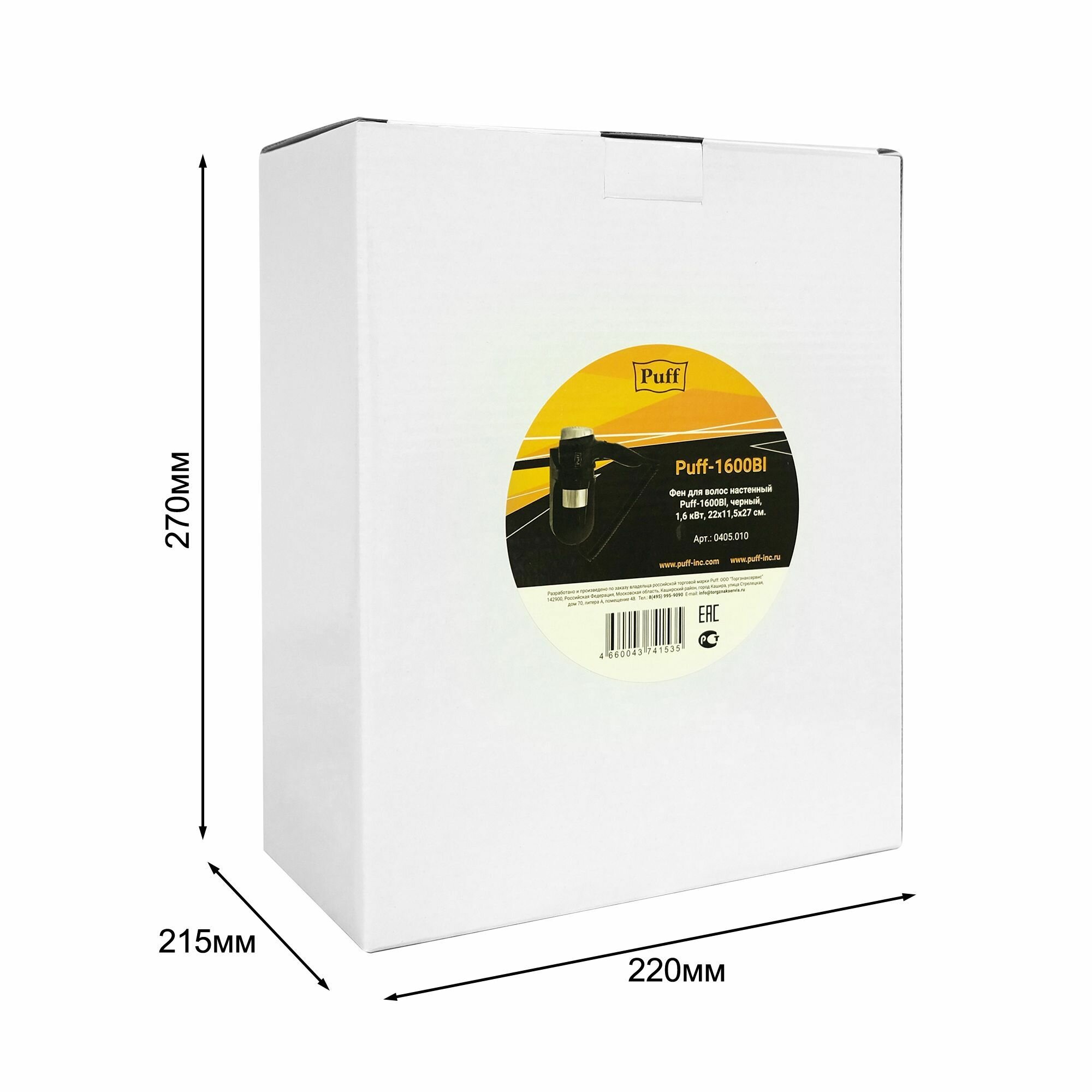 Фен для волос настенный, черный Puff 1600Вl, Арт.; 0405.010