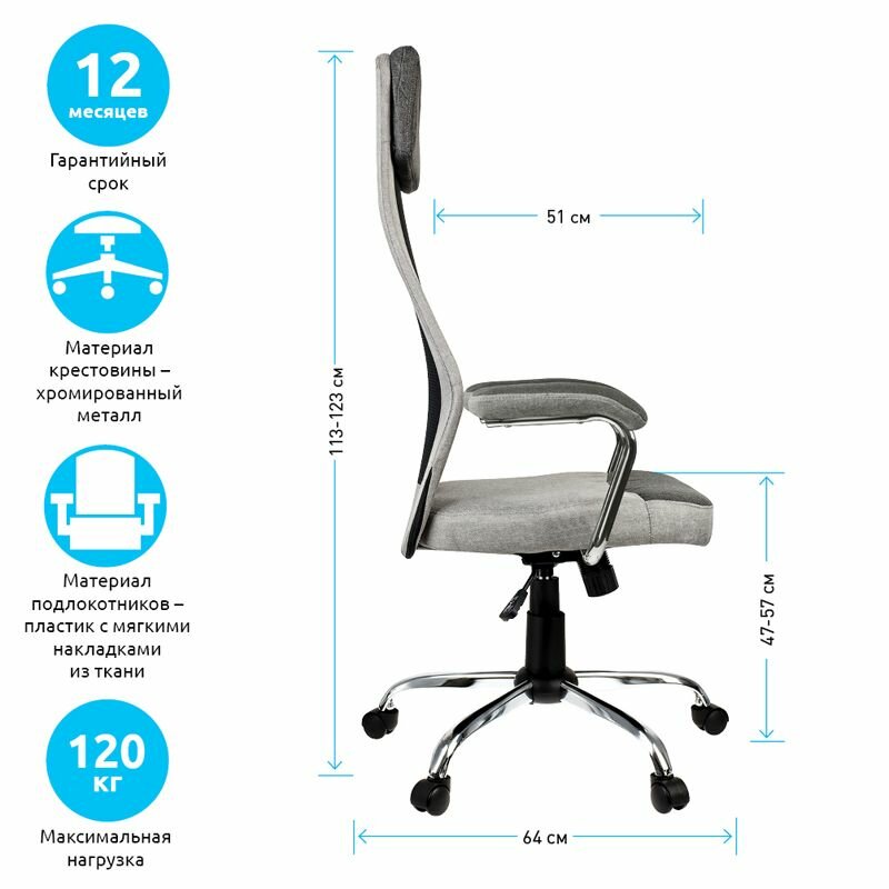 Кресло руководителя Helmi HL-E41 «Stylish», ткань/сетка, синяя/голубая