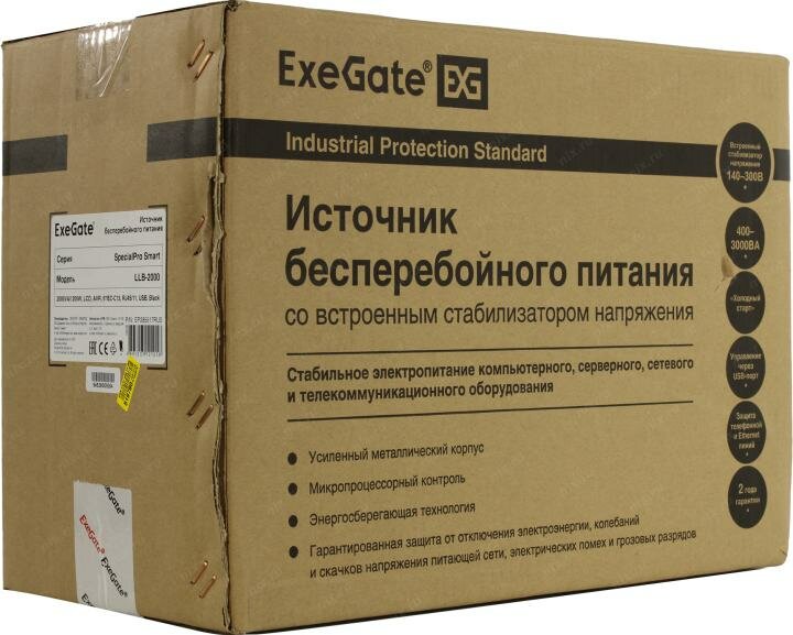 ИБП ExeGate SpecialPro Smart LLB-2000.LCD.AVR.6C13.RJ.USB <2000VA/1200W, LCD, AVR, 6*C13,RJ45/11,USB, металлический корпус, Black> EP285517RUS