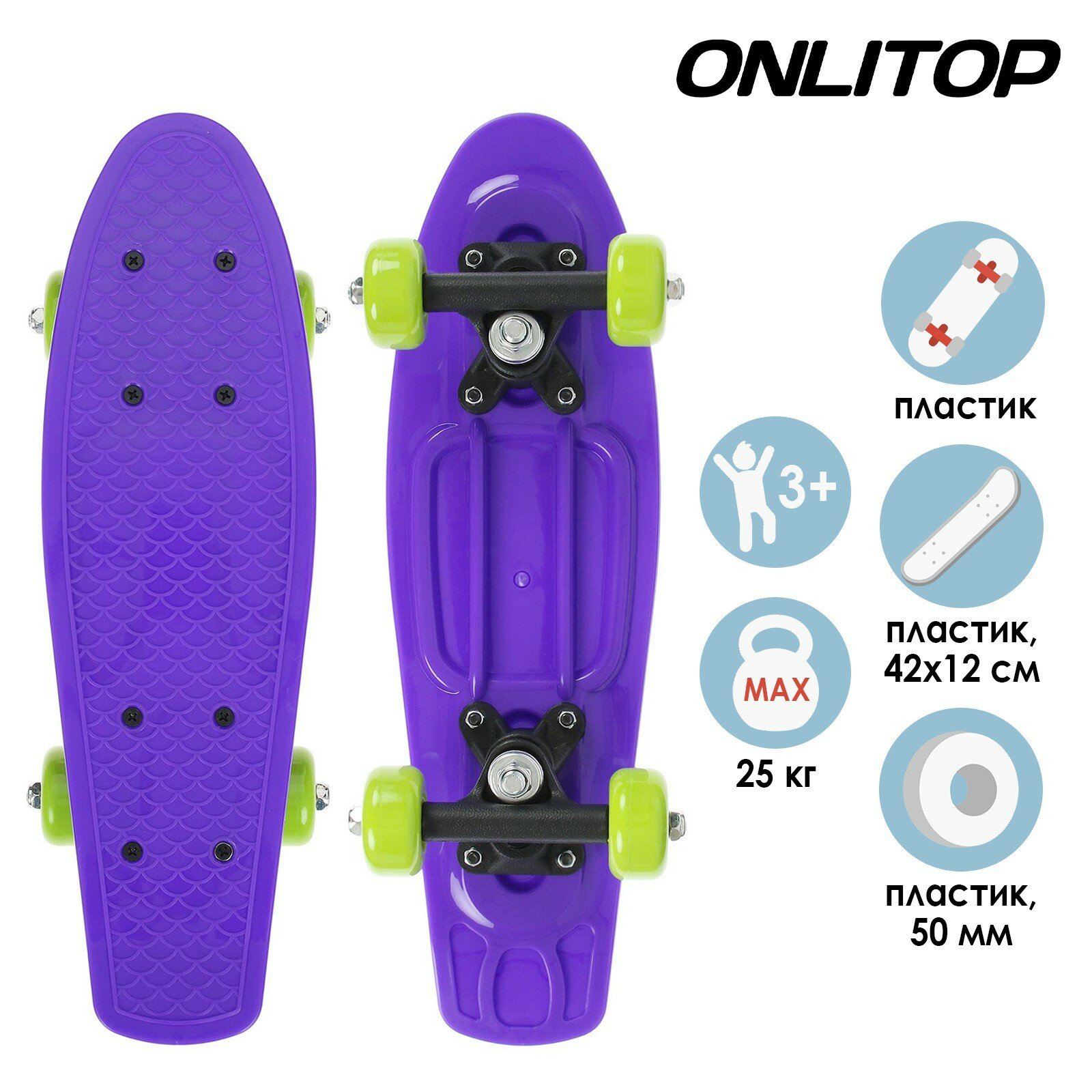 ONLITOP Пенниборд ONLITOP, 42х12 см, колёса PVC 50 мм, пластиковая рама, цвет фиолетовый
