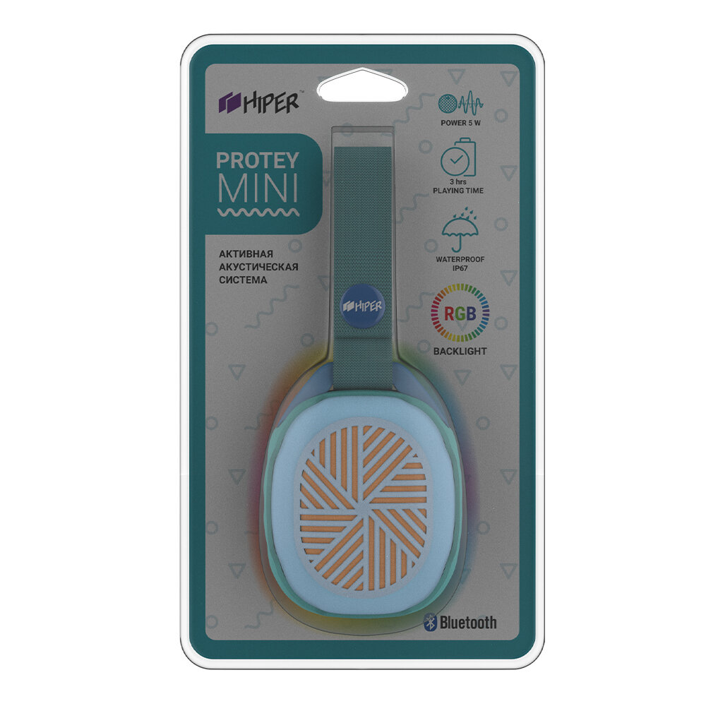 Акустическая система HIPER Protey Mini Cyan H-OM1, 5 ВТ,130 Гц - 18 кГц,600 мАч, BT 4,2,Hands-free,Micro-USB