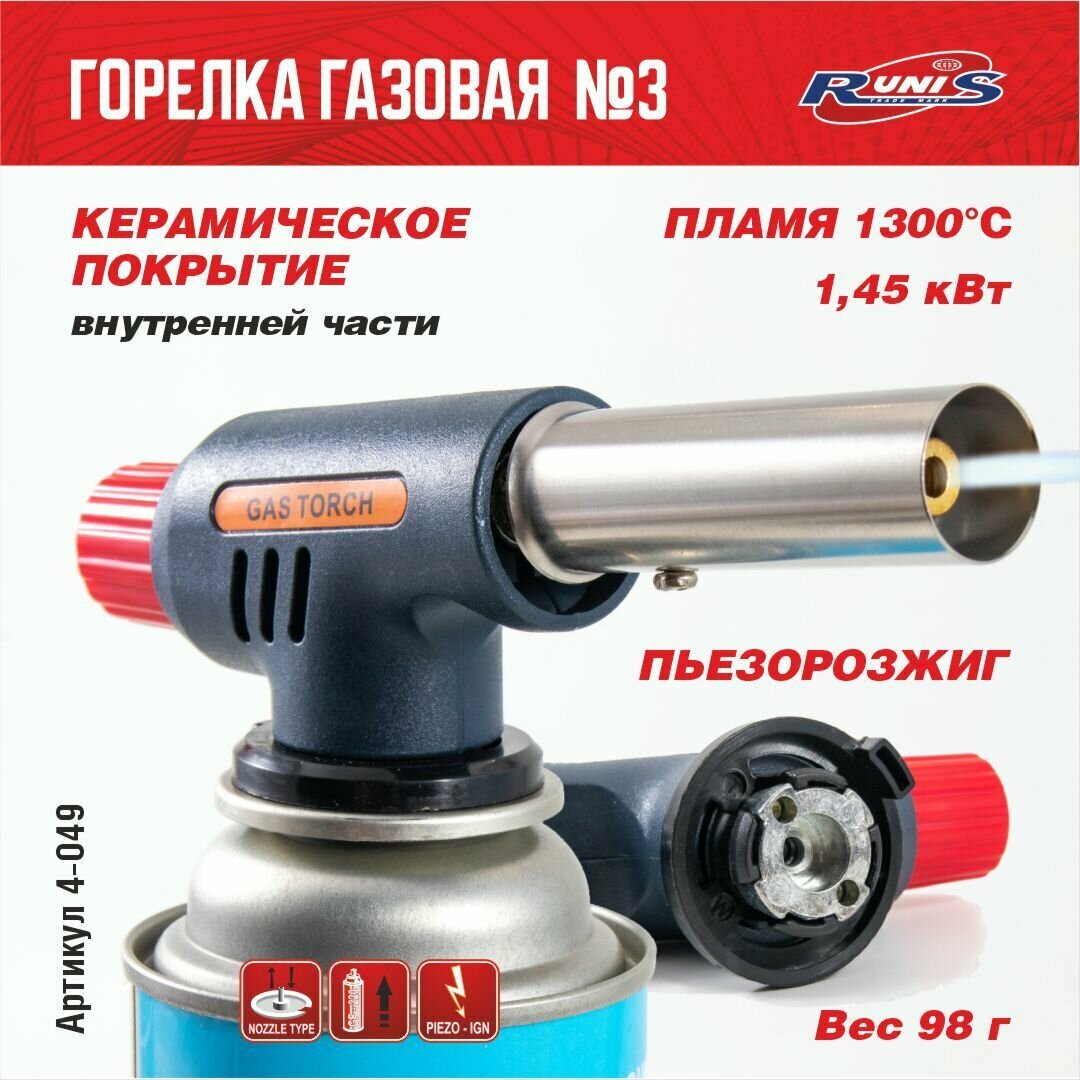 Газовая горелка RUNIS №3, пьезо. (цанг.)/100/