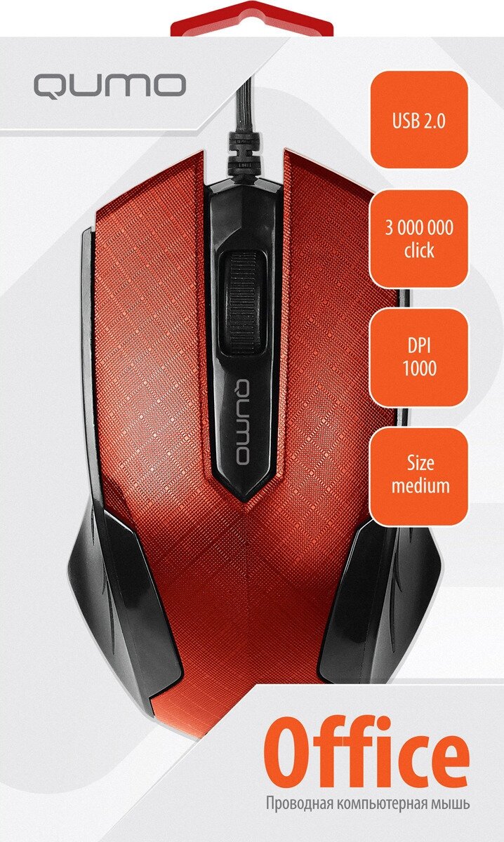Мышь Qumo Office M14 Red, проводная, оптическая