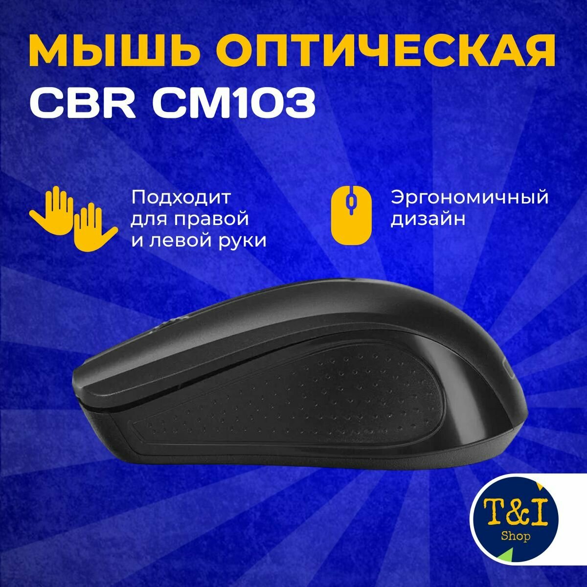 Cbr Мышь CM 103 Black, Мышь проводная, оптическая, USB, 1000 dpi, 3 кнопки и колесо прокрутки, ABS-пластик, длина кабеля 1,5 м, цвет чёрный
