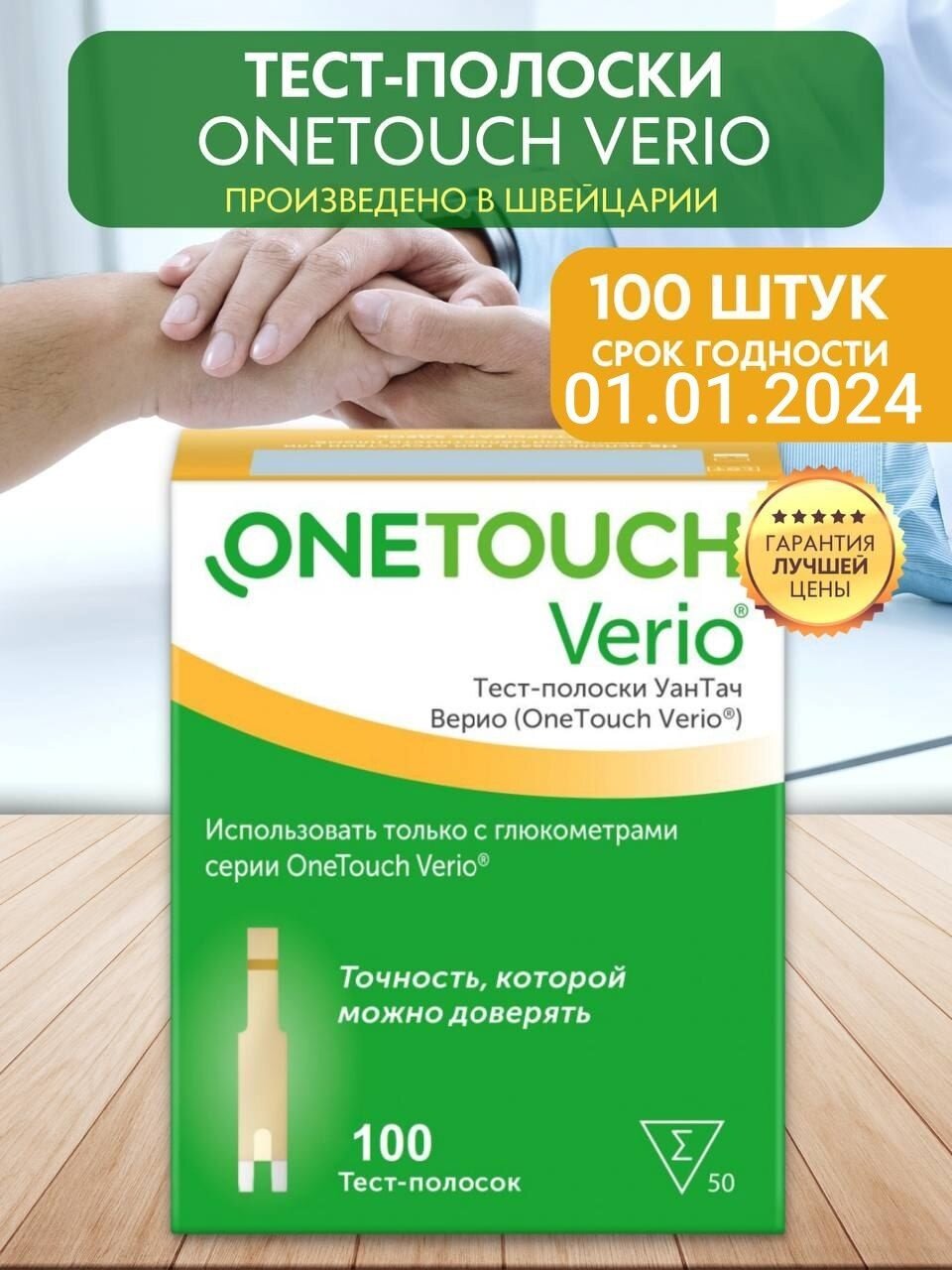 Тест-полоски УанТач Верио (OneTouch Verio) для глюкометра, 100 шт. интересное: