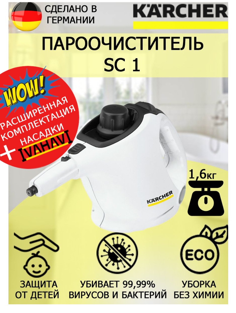 Пароочиститель ручной Karcher EasyFix SC 1 белый+латексные перчатки интересное: