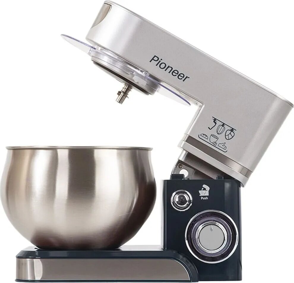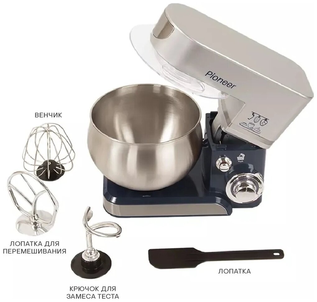 Планетарный миксер Pioneer MX322 blue marine с импульсным режимом, 6 скоростей, 3 насадки, объем чаши 5л, 1000 Вт