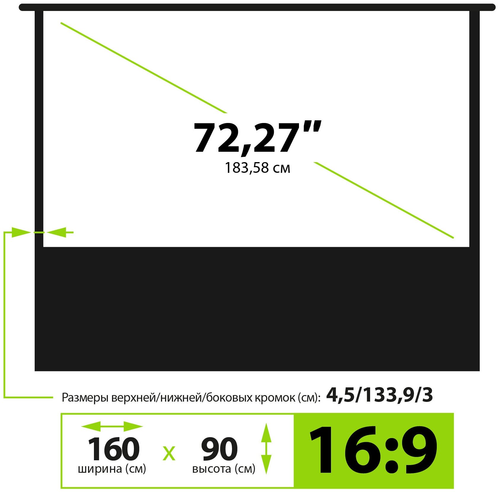 Экран для проектора Лама 180x101 см, формат 16:9, настенно-потолочный, ручной, цвет белый, 81 дюйм