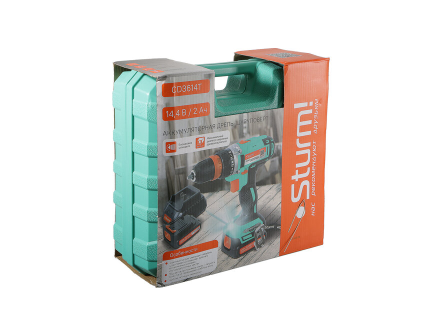 Sturm! Дрель, Шуруповерт CD3614T Дрель аккумуляторная 14 В, 2 акк. 2,0 Ач, съемный патрон, кейс CD3614T