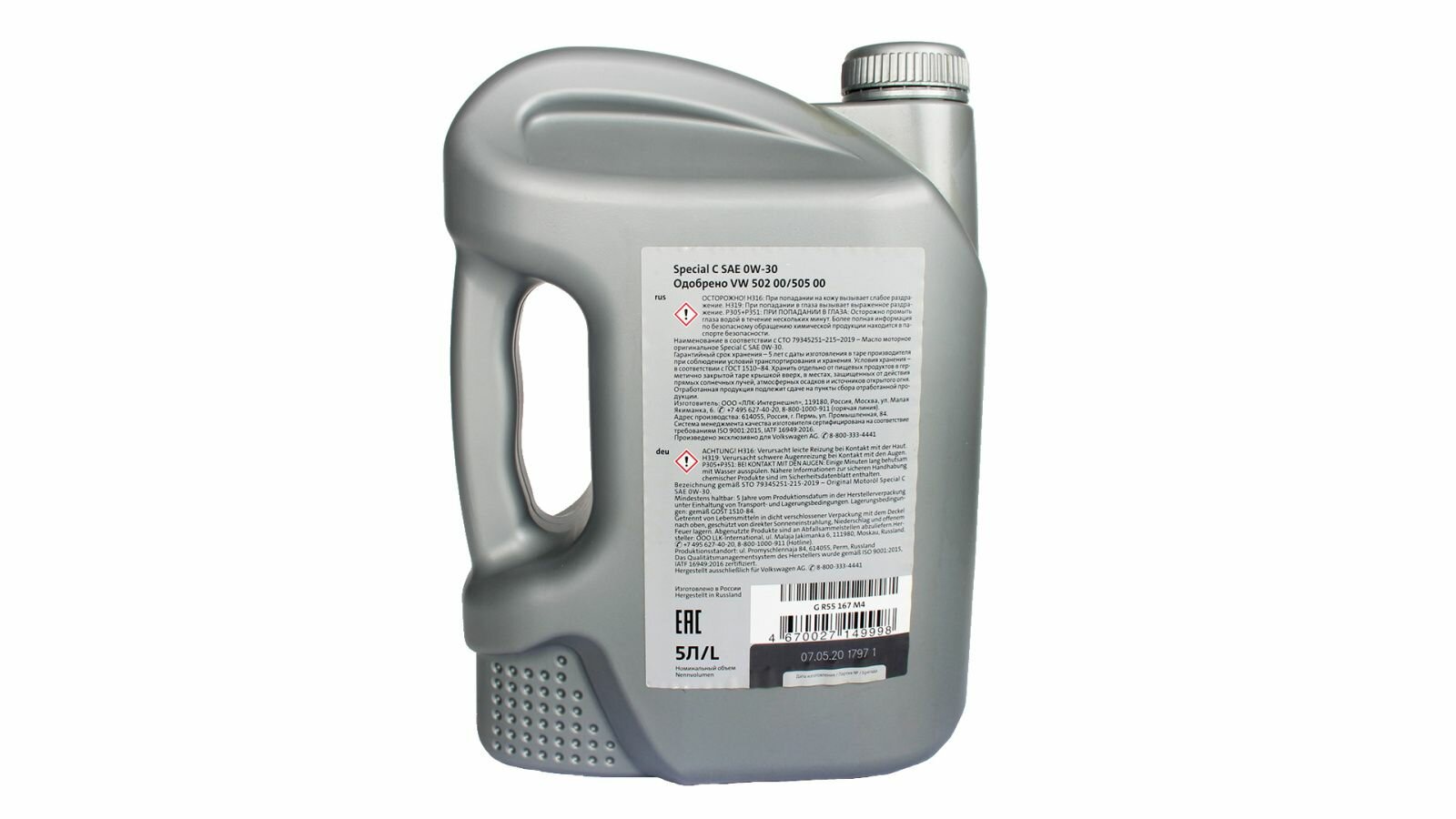 VAG GR55167M4 0W-30 5L VW , SPECIAL 502 00, 505 00 EU масло моторное синтетическое С