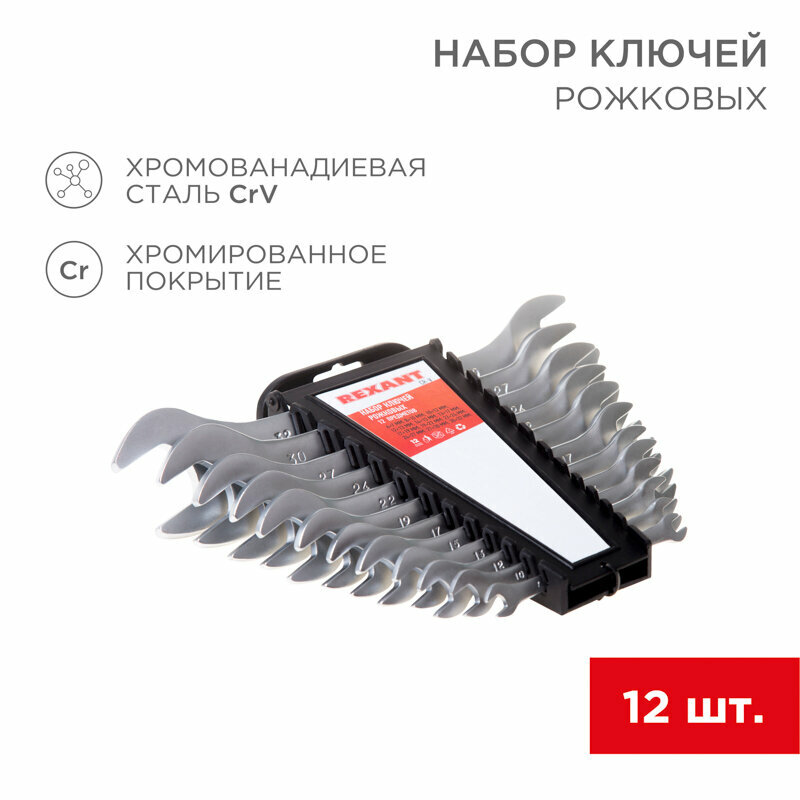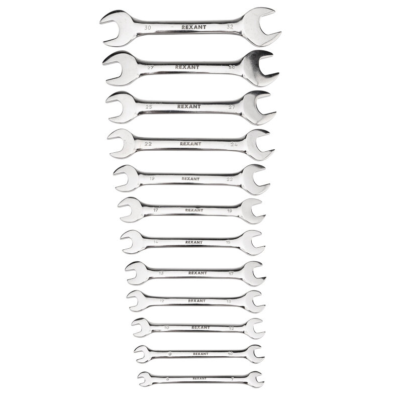 Набор рожковых ключей REXANT 6-32 мм 12 шт, CrV, полированный хром 12-5845