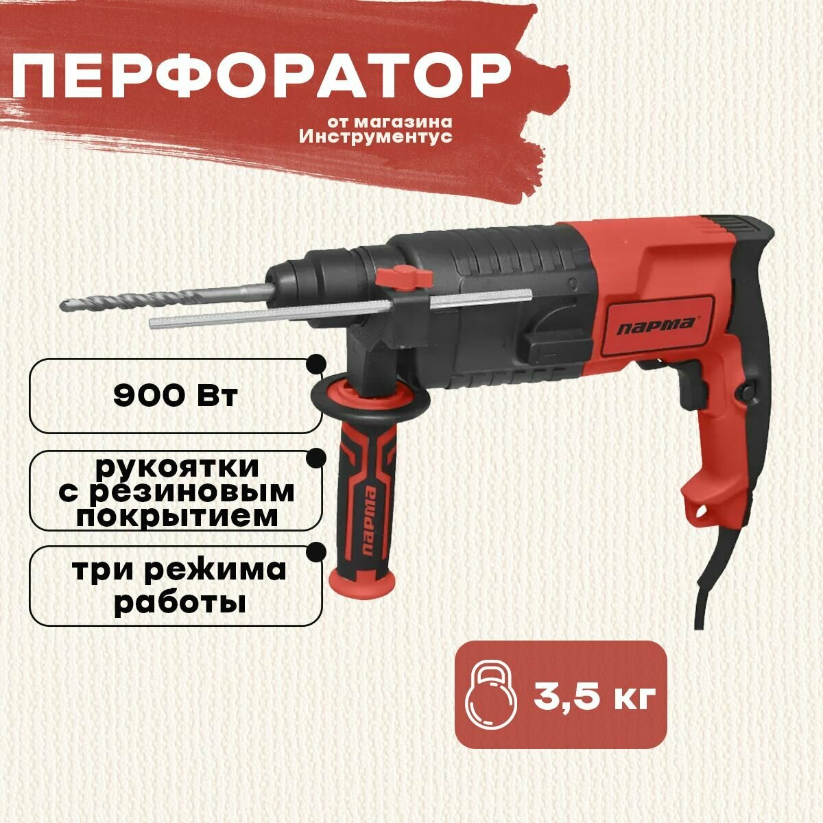 Перфоратор Парма П-02-26/900ЭР, 900 Вт красный/черный